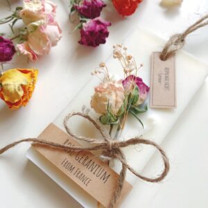 カラフルで華やかな、バラを使ったアロマワックスサシェを紹介しました。