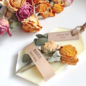 ミニバラのドライフラワーを使ったアロマワックスサシェを追加しました。