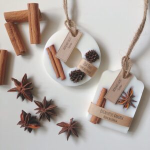 リング型の方は木の実とシナモン、タグ型の方はスターアニスとシナモンを使いました。