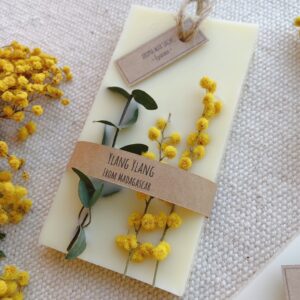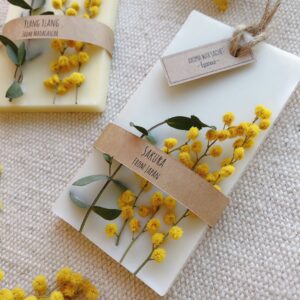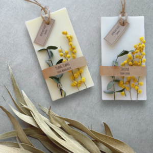 明るいミモザと、穏やかなユーカリを使ったアロマワックスサシェを紹介しました。