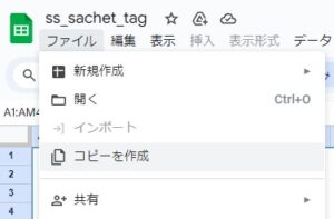 以下の画像を参考に、「ファイル」から「コピーを作成」を選択し、自分のドライブ内にこのスプレッドシートのコピーを作ります。