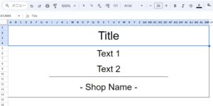 「Title」「Text 1」「Text 2」「- Shop Name -」の部分は、好きな文字列に変更します。