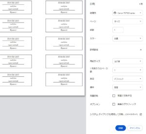 すでに用紙サイズや余白の設定はしてあるので、ハガキに印刷する場合は何もいじらなくて大丈夫です。