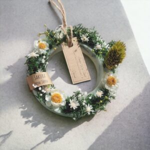 春らしいリース風アロマワックスサシェ。