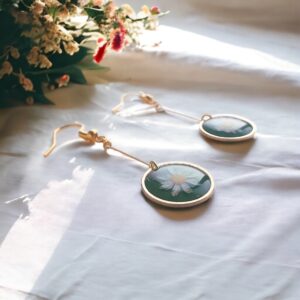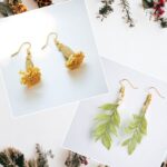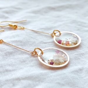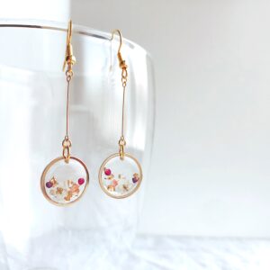 透き通るレジンに、小花や金箔を閉じ込めた耳飾り。