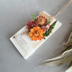 ブーケ風デザインのアロマワックスサシェを紹介しました。