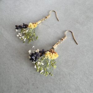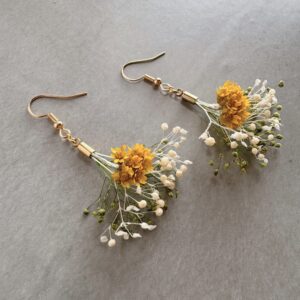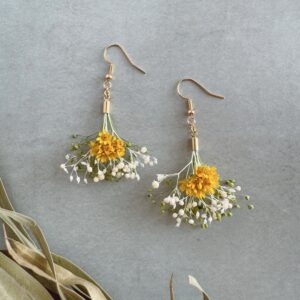 黄色いお花がメインの花束風耳飾り。