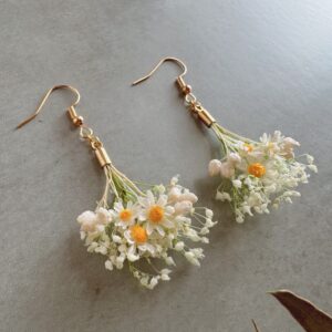 スターフラワーがメインの花束風耳飾り。